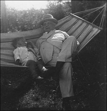 Jean Sibelius 1939 in der Hängematte mit seinem Enkelsohn Juhana