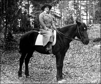 ungefähr 20-jährige Ruth auf dem widerspenstigen Pferd Vilkku