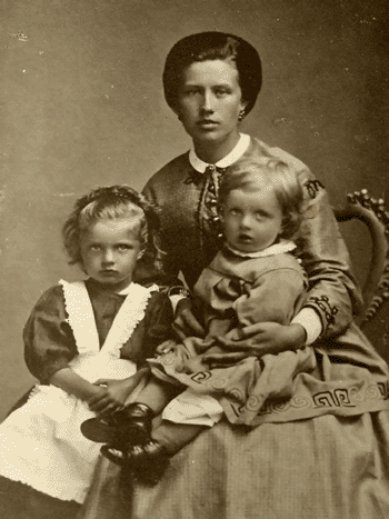 Sibelius mit ihren Kindern Linda und Janne um das Jahr 1867