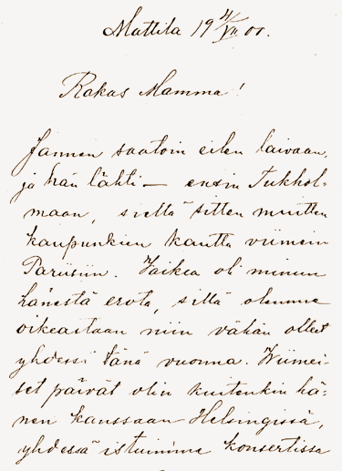 als Aino Järnefelt in die Schule kam, begann sie auch Briefe zu