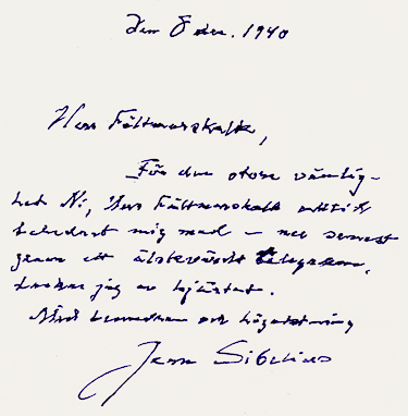 Der Komponist dankte Mannerheim für dessen Glückwunschtelegramm.