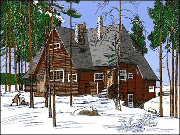 små fönsterrutor. Ainola hade samma färg som sina bjälkar. Det