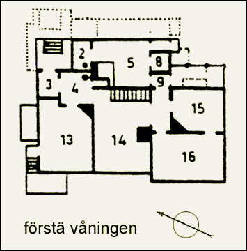 sov- och arbetsrum samt reservtrapporna till andra våningen.