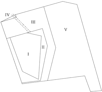 nuvarande 225,5 meter långa sydvästgräns hade bildats.