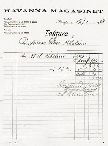 tobaksfabriker. Också Mannerheim kom ihåg Sibelius med H. Upmann