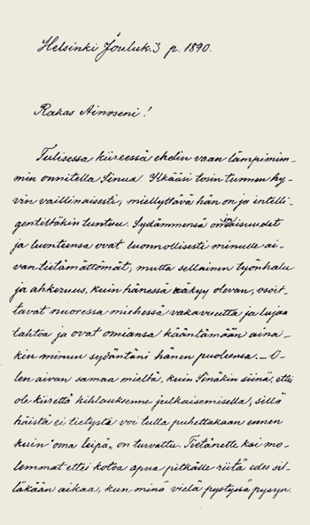 Aino genast 3.12.1890 när han fått nys om sin dotters hemliga