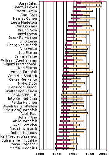 vidstående diagram finns några av Sibelius vänner, lärare